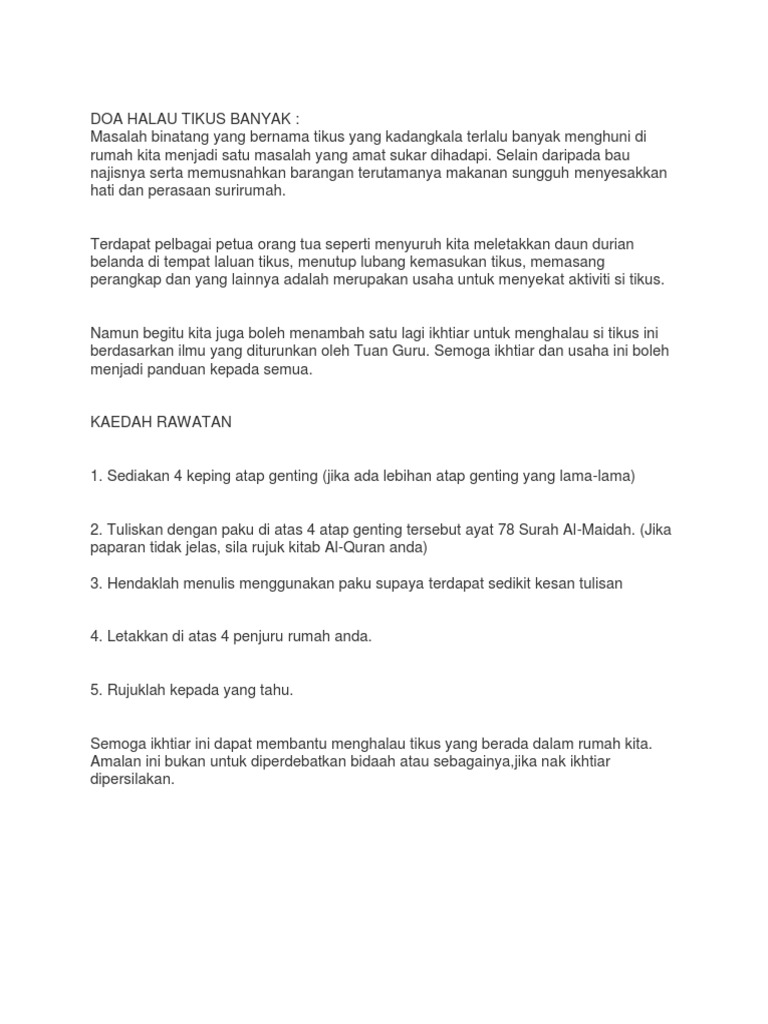 Doa Halau Tikus Dari Rumah Frensya